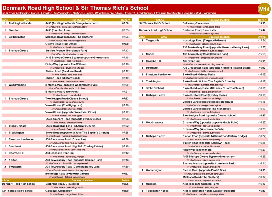 To download & print a copy of the M14 timetable, click here